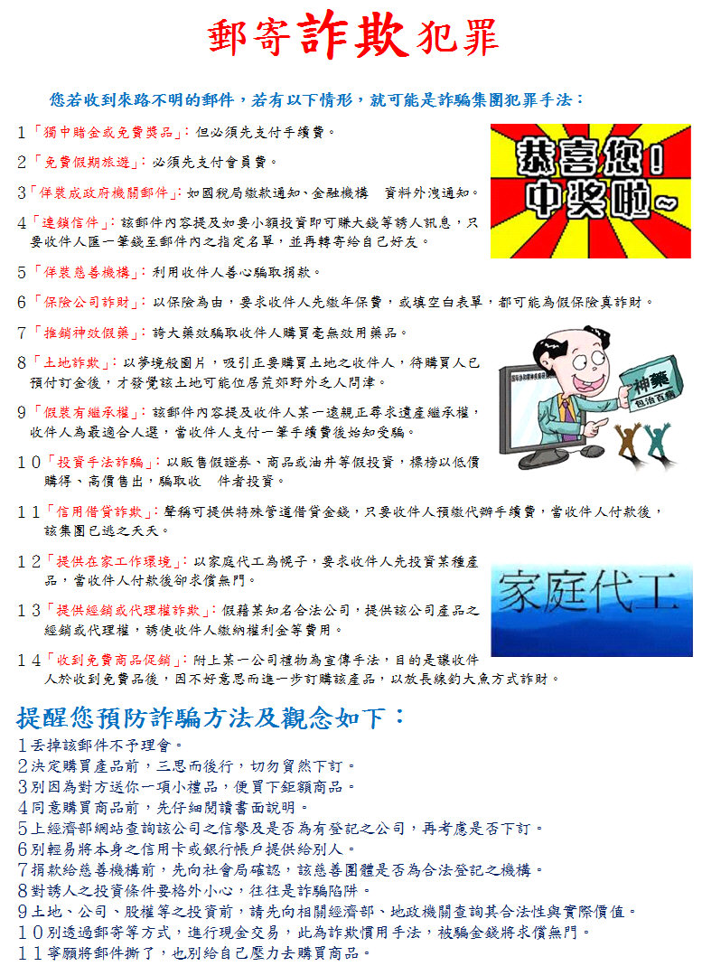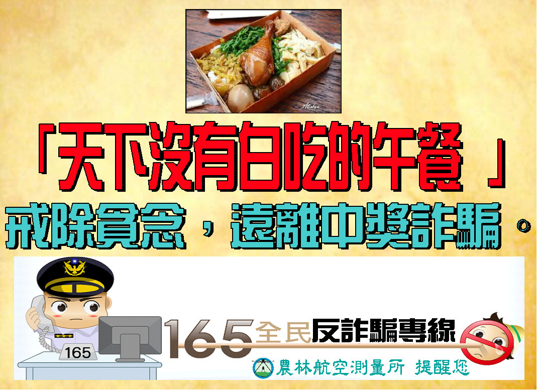 「天下沒有白吃的午餐 」:戒除貪念,遠離中獎詐騙。