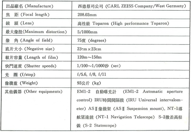 中國農村復興委員會於民國43年進行第一次森林資源及土地利用航測調查,至民國60年代已逾20年,且當時伐木事業是國家賺取外匯重要來源之一,為獲得最新資源分布及土地利用狀況,林務局(今農業部林業及自然保育署)規劃於民國62~66年間辦理第2次全省森林資源及土地利用調查工作,因此於民國61年引進1架PA-31航攝飛機,以及當時西德蔡司出產的ZEISS RMK A系列焦距為約21公分的空中照相機,交由台灣省政府農林廳農林航空測量隊(農業部林業及自然保育署航測及遙測分署前身,於民國62年7月改隸林業保育署)拍攝高品質航空照片以輔助調查。 RMK A21/23空中照相機運用當時相當先進的半自動設計,包含快門、軟片移捲及其他曝光所需之各種動作,均由照相機之命令單位-時間間隔機來控制,無須人力介入操作,使用的底片大小為23*23 公分,屬於微寬角照相機,性能十分優異,即使處於海拔1000公尺航高之低空照相環境下,拍出之照片依然清晰,此外,本款相機可搭載大容量底片盒,安裝長達400英尺之0.15 公釐厚度底片,曝光張數約450張,使每次任務均有足夠底片可供拍照,間接降低航空攝影任務成本。