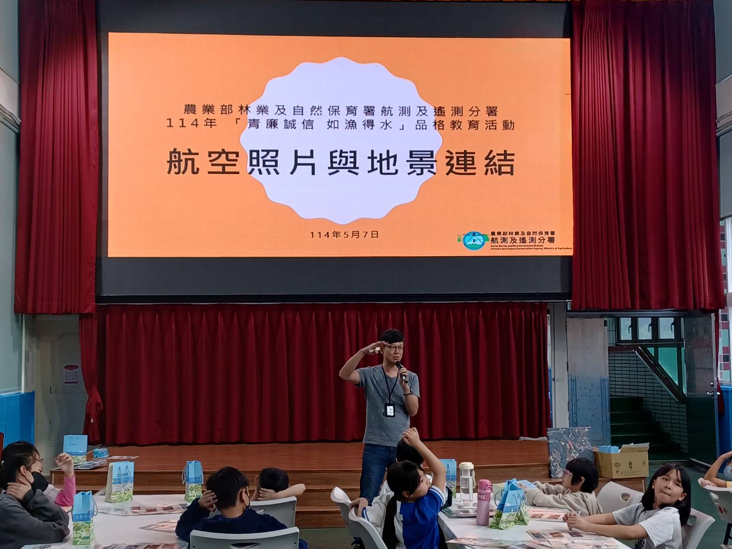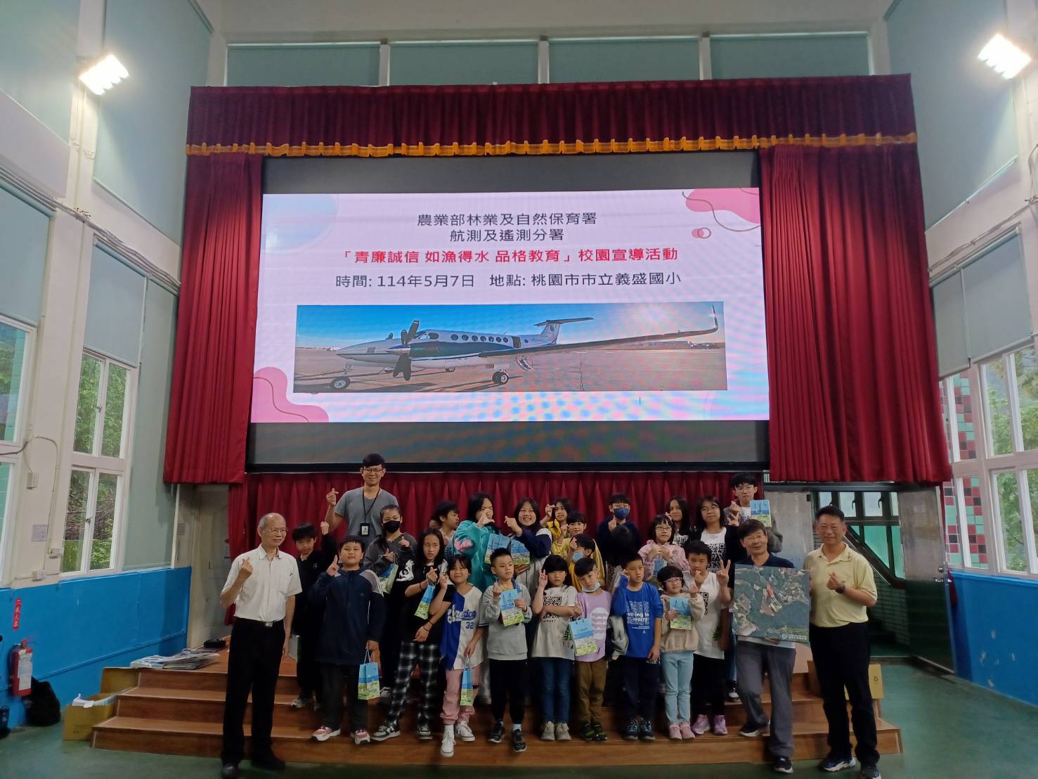 飛翔在廉潔的天空 本分署赴偏鄉校園以機關特色分享綠能誠信 本分署5月7日前往桃園市義盛國小,以機關航空攝影業務的特色,向復興區北橫原鄉的原住民小朋友介紹農業綠電、漁電共生及反詐騙等熱門話題。 義盛國小位於陡峭山區,建校後的校園建設與更迭,都是採用本分署歷年拍攝的航照圖向學童與鄉親展現,很高興有這個機會,本分署親赴該校辦理教育宣導,特別安排一個周三下午的時間,召集全校35位學童來參與課程。 本次活動是農業部114年「青廉誠信 如漁得水」品格教育宣導系列活動之一,綠能、誠信、廉潔與農業發展併存共榮,是我國當前的重要的農業政策議題,本次活動目的是將當前國家政策以生動活潑的方式介紹給偏鄉的國小學童們。 活動中以空拍圖帶領小朋友鳥瞰自己家鄉復興區的地景,帶領小朋友製作立體鏡,觀察空拍圖片,最後帶著小朋友操控摸擬器,在活動中心大型全彩LED顯示幕上體驗無人機飛翔。 小朋友們一個個興奮地排隊練習操作無人機在綠地、藍天中,飛越樹林和城堡,飛向目標。師長及未輪到操控模擬器的同學,看著顯示幕上同學操作的無人機歪歪斜斜的飛上天空、驚險穿越障礙物,笑聲連連。 本分署並致贈義盛國小五幅不同年度的校區航拍影像,該校陳校長及教師都十分喜愛,老師們可以在課堂上善用這些照片,帶領學童認識學校與家鄉的演變,深具紀念及教育意義。 義盛國小傅聖坤主任表示,十分感謝航遙測分署舉辦本次活動,讓學童們在活動中深化誠信廉潔品格教育,紮根在日常生活得以體現。這次活動不論是課程上或是活動遊戲體驗都讓全體學童們留下最美好的回憶。也讓誠信廉潔的概念從小札根深入腦海。